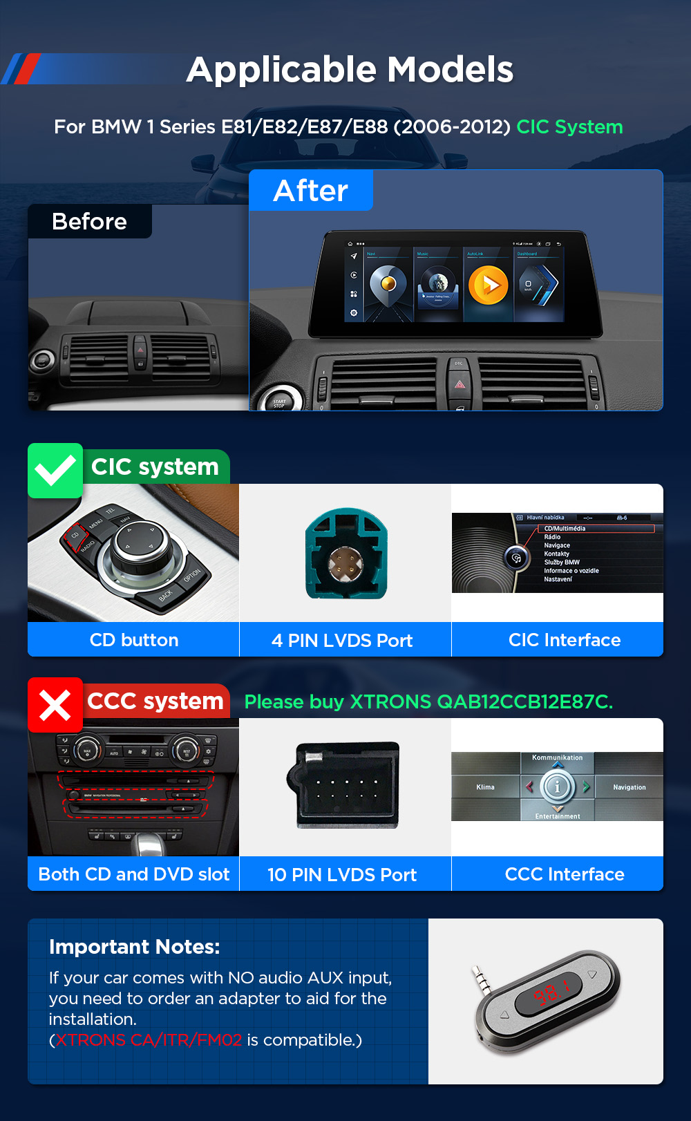 XTRONS’ revolutionary car stereo is tailor made for BMW vehicles and their original OS. Not only matching the dashboard for a seamless appearance, the system perfectly integrates the latest Android OS into your vehicle, making the dash smarter than ever. Now without uninstalling your CD player, radio or iDrive, you can simply swipe the screen and enter a new world of entertainment and 4G communication.